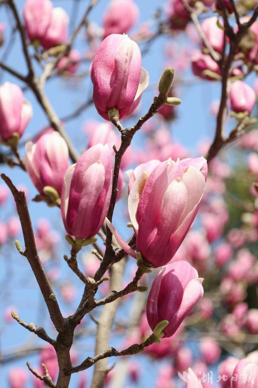 湖北日报客户端讯(通讯员方小齐、赵莹莹、徐晶、邓洲)春风送暖,繁花竞放。连日来,武汉市洪山区幸福湾公园、关山公园内的贴梗海棠嫣红如霞,文治街、团结大道沿线的玉兰花清雅似雪,将“大学之城”装点成一幅流动的春日画卷。市民纷纷走出家门,在公园湖畔与街头巷尾邂逅诗意春光。