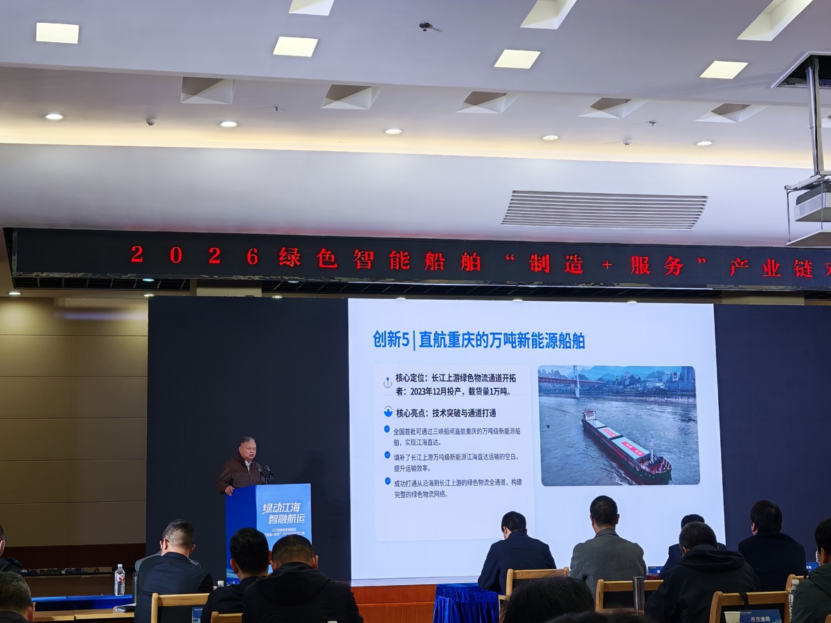 交流发言环节,武汉长江船舶设计院分享了绿色智能船舶设计成果,包括纯电池动力船舶“长江三峡1”、甲醇单一燃料游轮“长江七号”等。