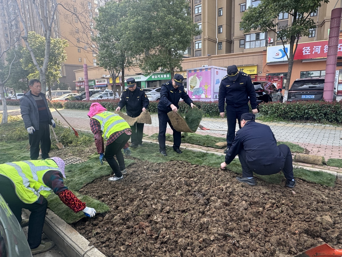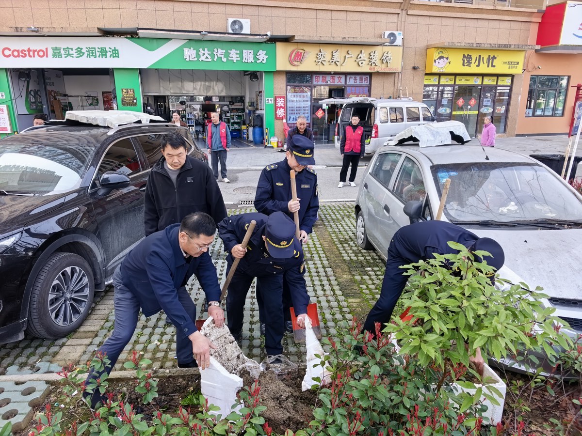 3月11日,武汉市东西湖区城管综合执法大队联合径河街综合执法中心、临空港绿化公司、径河环卫公司,走进石家坡社区,见缝插绿,清洁家园。
