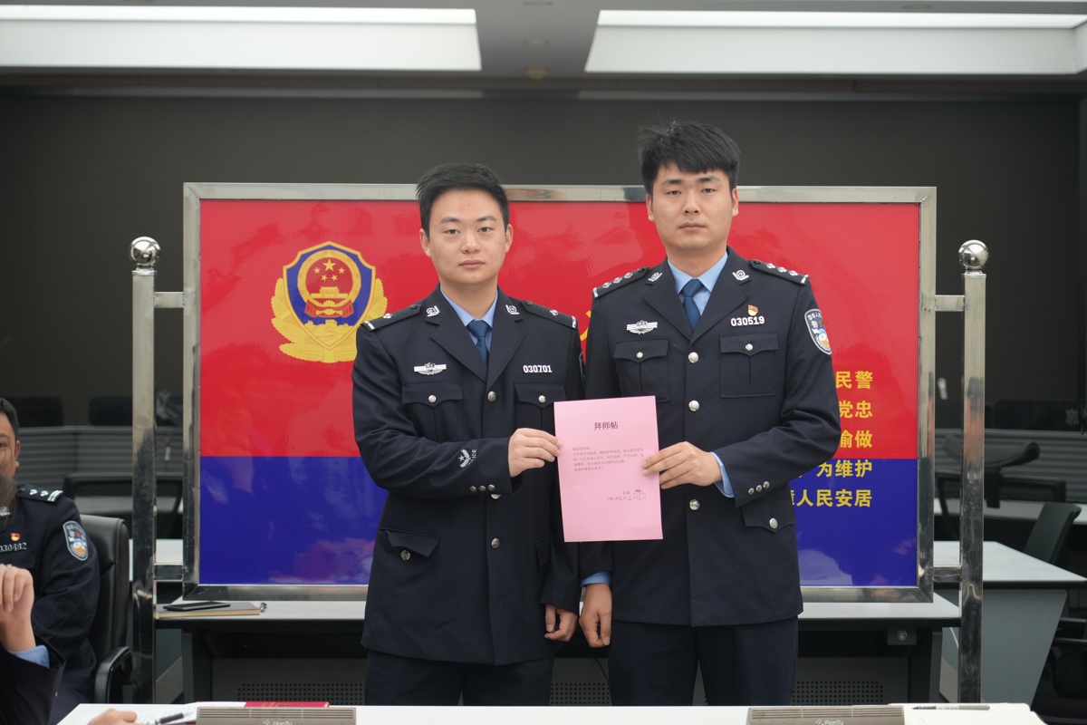 仪式在庄重热烈的氛围中拉开帷幕。活动首先宣读了师徒结对名单,签订师徒责任状,明确“一对一”的带教关系和目标任务。随后,青年民警怀着敬仰与期待,向经验丰富、业绩突出的师傅们呈上“拜师贴”,以传统而庄重的方式,表达虚心学习、砥砺奋进的决心。