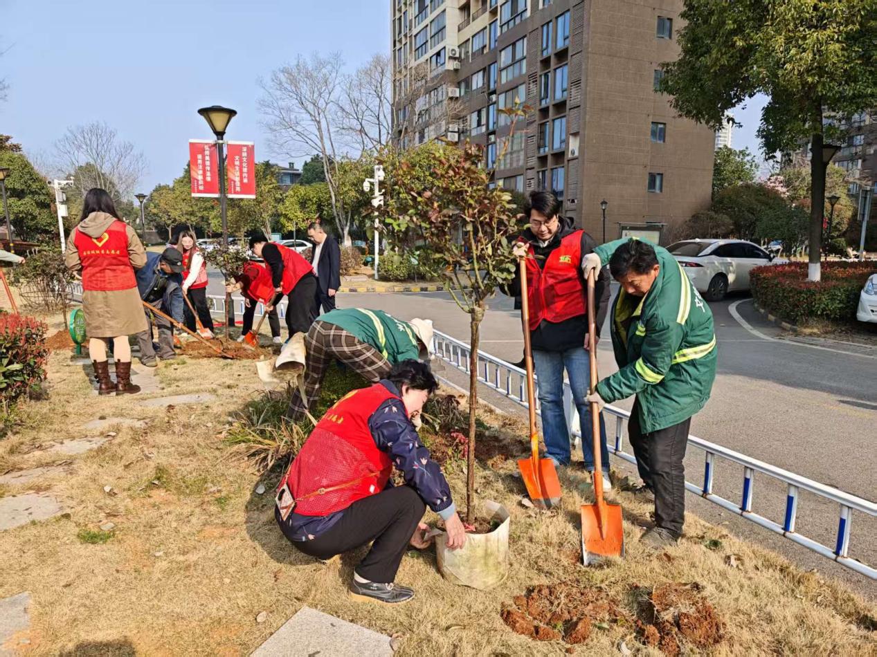 3月12日上午,武汉经开区沌阳街道海滨城社区联合联投物业公司,组织社区党员、志愿者及物业工作人员共计20余人,在小区绿化带开展“植此青绿 共建家园”主题植树活动,以实际行动为小区增添新绿,共建美丽宜居家园。