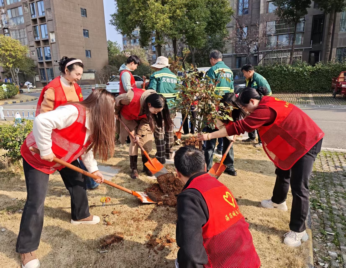 经过近一个小时的辛勤劳动,大家齐心协力栽下了月季、冬青球等绿植。新栽下的月季含苞待放,冬青球郁郁葱葱,错落有致地挺立在春风中,为初春的小区增添了勃勃生机。活动结束后,党员志愿者们还对小区绿化带内的枯枝杂草进行了清理,以实际行动美化小区环境。