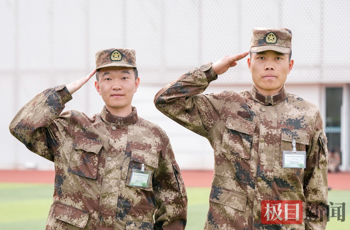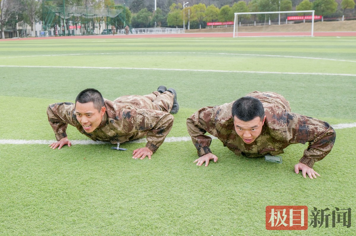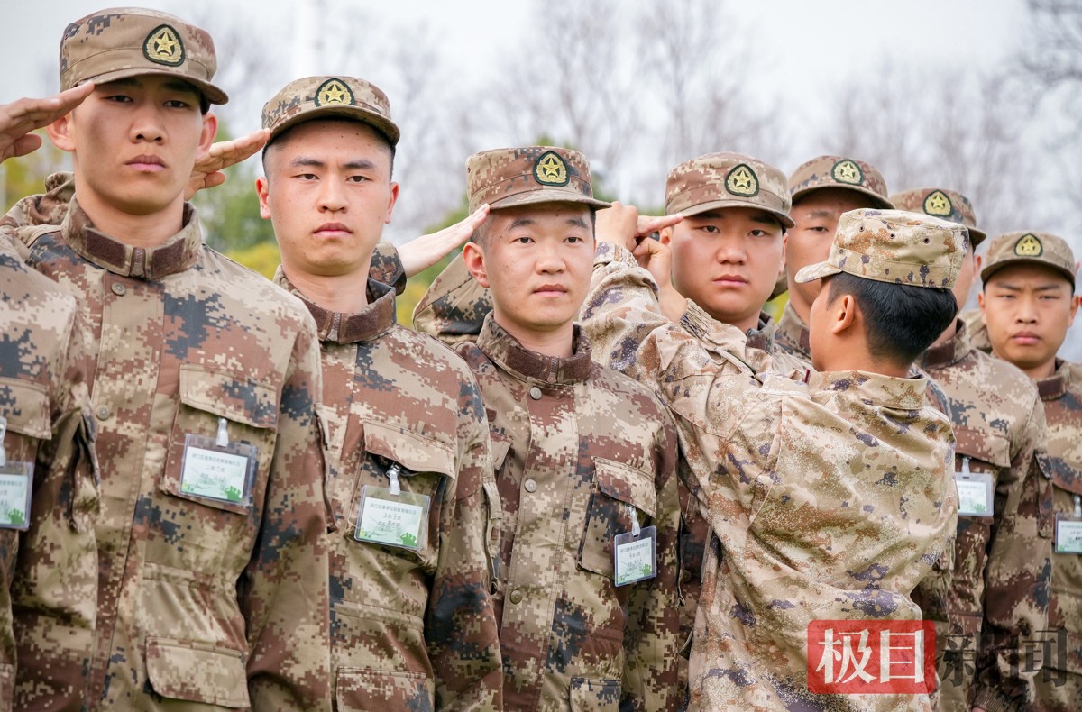 3月14日下午,极目新闻记者现场看到,即使对基本的队列和基础战术已经很内行,梁林飞和王以立仍在虚心接受现场教官下达的各种训练指令,并尽最大努力去完成好。