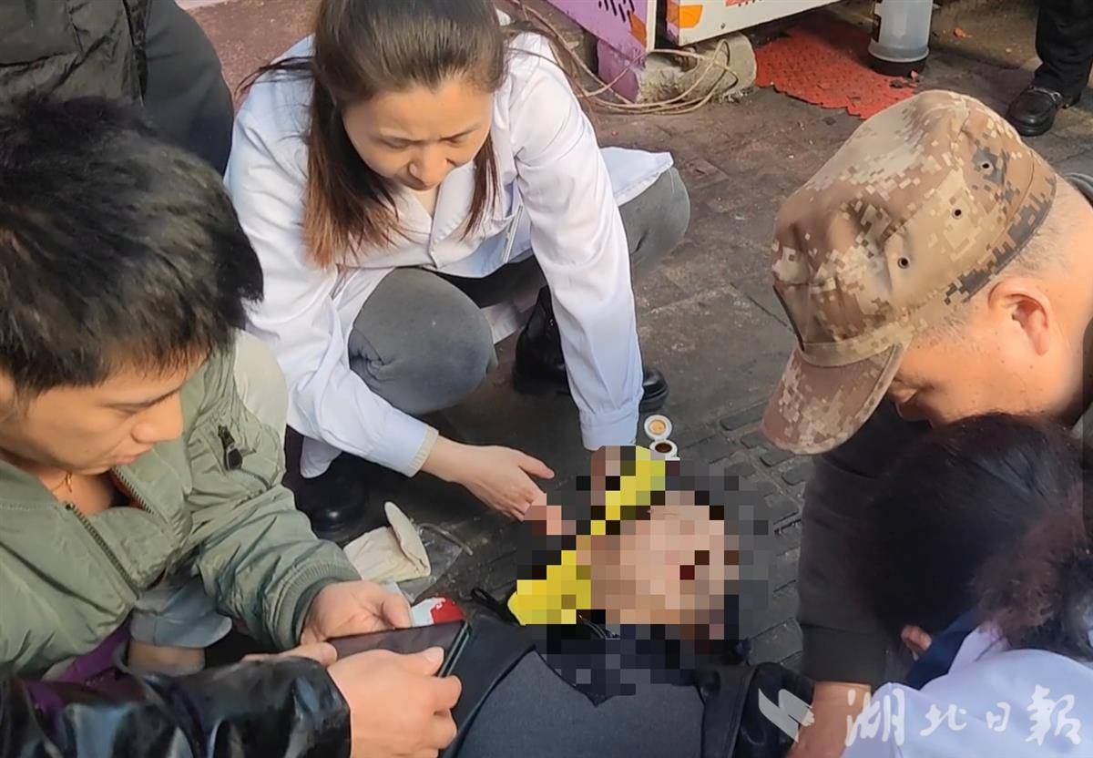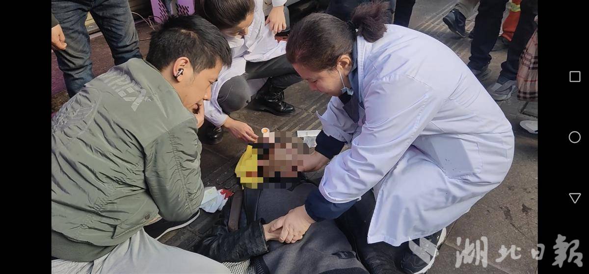这时,120的鸣笛声由远及近。老人的老伴也被人从家里叫了过来,她挤进人群,看到满头是血但已经有了呼吸的老伴,又看到蹲在旁边的医生,声音一下子就哽咽了:“多亏了你们……不然我真不敢想……”