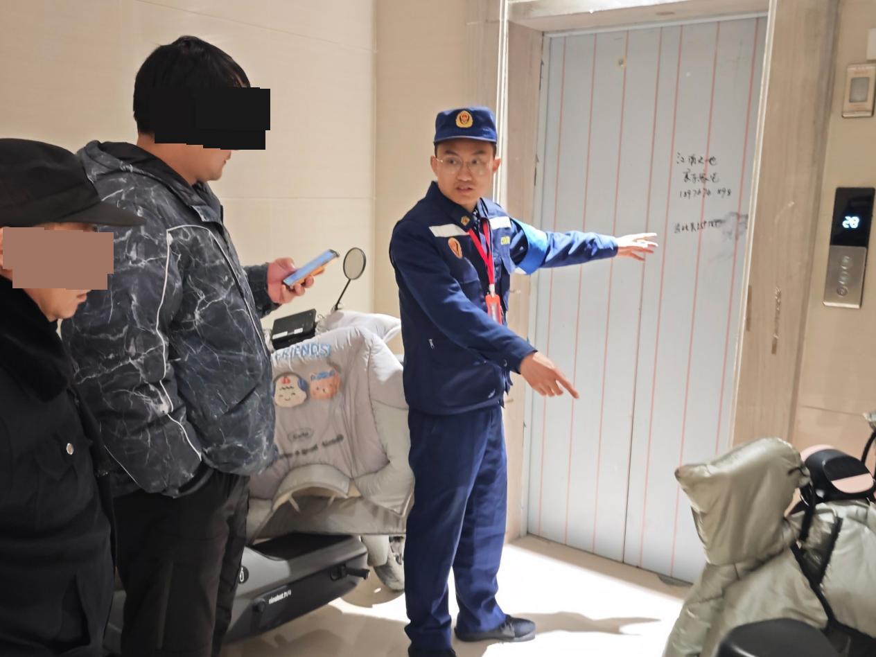 “电动车不能停在电梯口和楼道里,一旦起火或者堵住通道,后果不堪设想。”在汉南区,消防员走进恒大时代新城小区,发现部分居民将电动自行车停放在电梯口。消防员当即协同物业人员将电动自行车移至安全区域,并对相关车主进行了消防安全教育,讲明违规停放电动自行车存在的安全隐患和火灾风险。同时,要求物业加强日常巡查,切实防止电动自行车违规停放和占用公共通道,确保消防通道畅通,及时消除消防安全隐患。