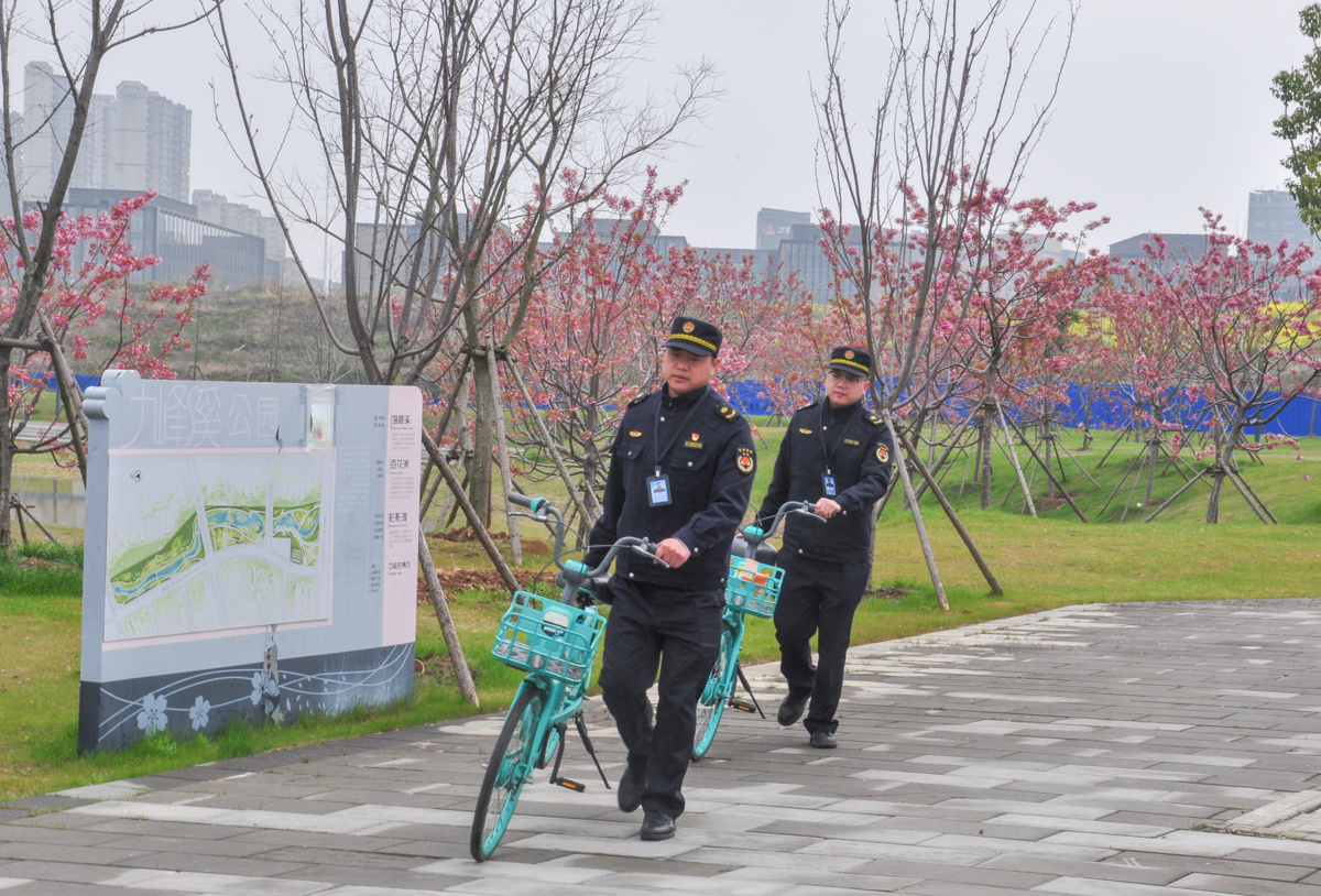 光谷三月,春意正浓,九峰溪公园“不负光樱‘马’住春色”樱花季主题活动作为光谷又一热门生态打卡地,正以满园春色,静待市民游客共赴一场春日之约。在樱花季期间,东湖高新区城管局立足职能,以精细化管理为切入点,全力做好公园周边环境秩序的保障工作,将城市管理温度融入市民和游客的游园体验中。
