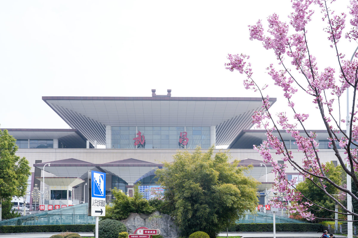 同时,搭配景石点缀栽植穗花牡荆、山茶、亮晶女贞等灌木,辅以时令草花与翠绿草坪,形成了层次分明、简洁精致的站前景观,既凸显了樱花的柔美,又彰显了武昌的生态底蕴。