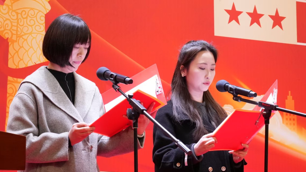 现场为17名立功和受表彰的现役军人家属集体颁送喜报,一张张喜报,是军人保家卫国的荣誉见证,更是军属默默奉献的荣光彰显。汉阳区退役女兵代表缓步上台,为新兵代表献上鲜花,朵朵鲜花承载着家乡人民对新兵的殷切期盼,更饱含着对他们建功军营的美好祝福。