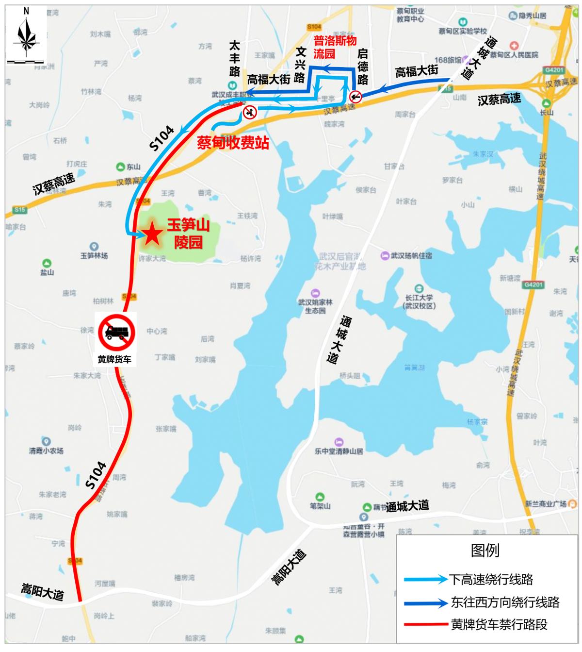 (1)汉蔡高速蔡甸收费站(高福大街)路口下高速车辆禁止直行和左转,一律右转至高福大街绕行。