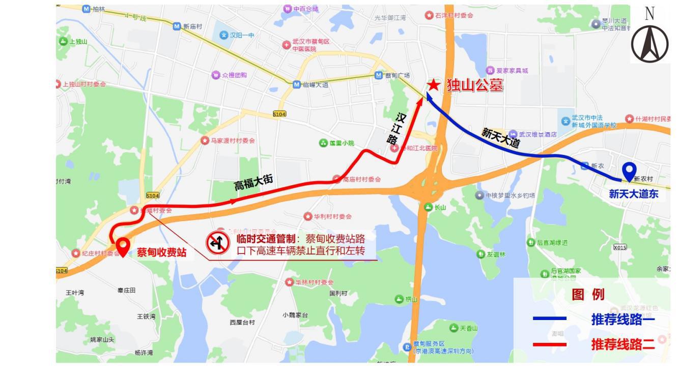 推荐线路二:中心城区-汉蔡高速蔡甸收费站-高福大街-通城大道-汉江路-独山陵园