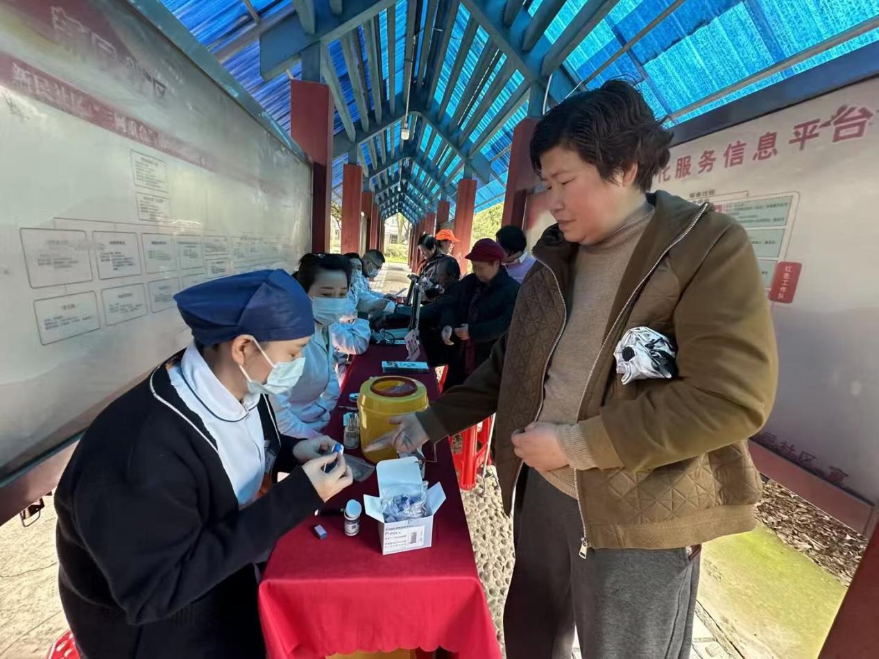 义诊区由新民社区卫生服务站医生坐诊。提供免费测量血压、血糖。医护人员认真记录数据,细致询问日常作息与饮食,耐心讲解高血压、高血糖防控知识,给出个性化养生建议。“大叔,您血压有点偏高,平时要少油少盐,多注意休息。”“在家门口就能免费查血压、测血糖,太贴心了!”居民们连连道谢,实实在在的健康服务让大家倍感安心。
