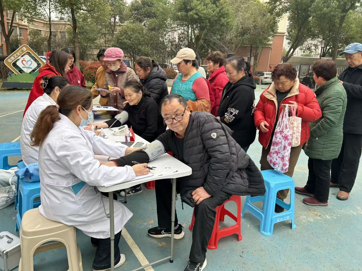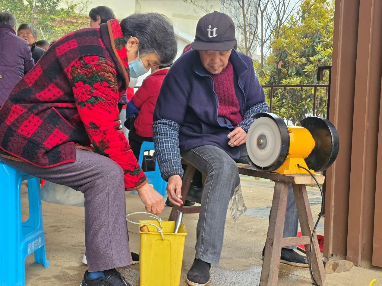 与此同时,缝补、磨刀等“老手艺”服务台与健康义诊专区前也排满了循声而来的居民。在便民摊位前,伴随着磨刀石的“沙沙”声和缝纫机的“哒哒”声,一把把生锈迟钝的菜刀变得光洁锋利,一件件开线破损的衣物被修补平整,这些不起眼的“小修小补”切实解决了群众的烦心事。而在义诊专区,花山社区卫生服务中心的医护人员细致地为居民测量血压、血糖,耐心解答中老年人关于慢性疾病的疑问,并结合春季气候多变的特点,向大家普及传染病预防和日常养生保健知识。从生活琐事的修补到身体健康的守护,各项服务精准切中居民的实际痛点,将防线与温暖一同筑牢在社区一线。
