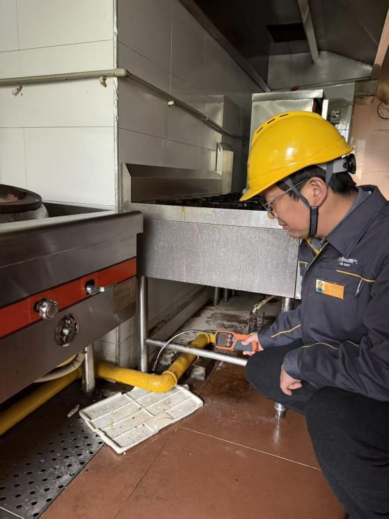 检查过程中,工作人员重点对燃气管道、阀门、连接管、燃气报警器、熄火保护装置等关键设备细致检测,严厉排查私接乱改、使用不合格器具、违规用气等风险隐患,对发现问题现场指导、立行立改,建立台账闭环管理,做到隐患清零。面对商户分布广、经营时段不一的特点,班组优化错峰作业,加班加点推进排查,实现不漏一户、不留死角、全覆盖无盲区。