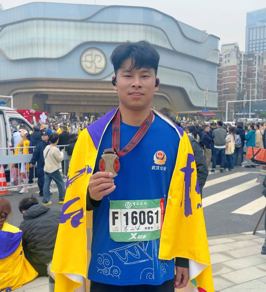 半程马拉松的赛道上,分局民警张奎杰正保持着稳定配速。这位曾获全市公安机关先锋杯警务实战教官技能比武个人第三名的青年民警,今年是第一次以护跑团身份站上汉马赛道。跑到15公里处,他注意到前方一名年轻跑者步伐开始踉跄,呼吸节奏明显紊乱。张奎杰迅速跟上前去,轻声询问:“还好吗?要不要减速调整一下?”在确认对方只是暂时性体能极点、无需医疗救助后,他陪跑了近百米,直到对方节奏恢复。“跑步和办案一样,关键时刻要沉得住气,既要快,更要稳。”张奎杰赛后说道。