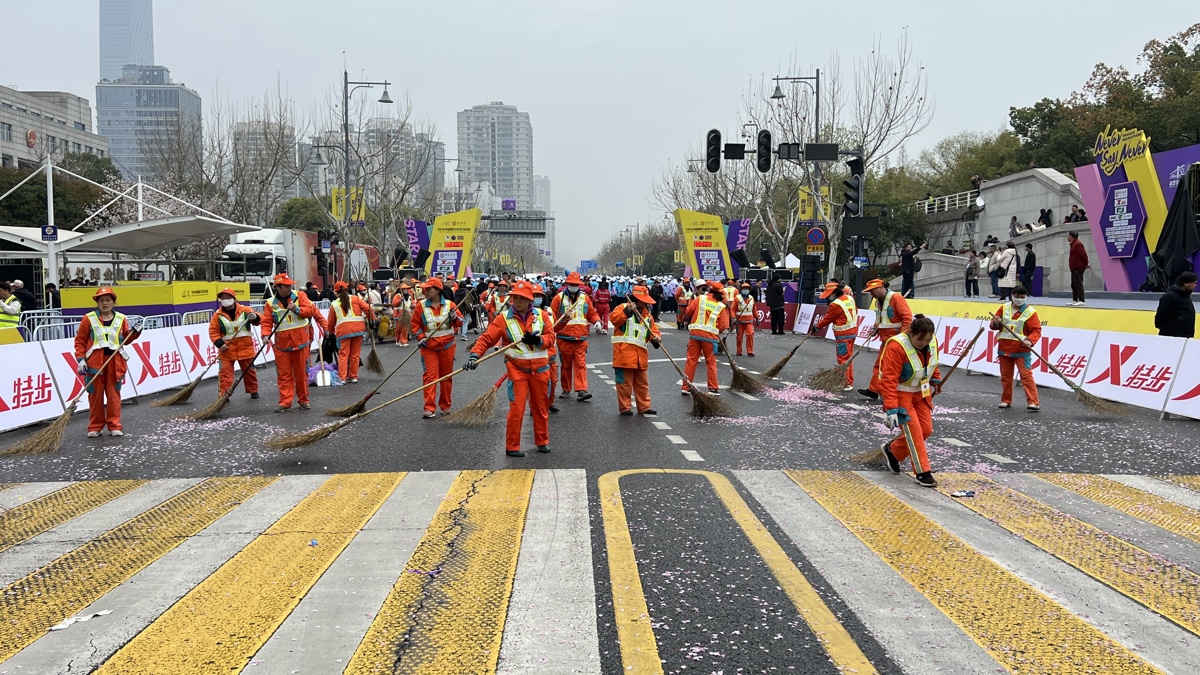 结合全市“扫盲区、清死角、净全域”专项行动,紧盯长江大桥、沿江大道、龟山南路等关键点位,制定“赛前深度清洗、赛中动态保洁、赛后快速清场”分段保障方案。3月份以来,持续开展环境卫生大扫除,整治卫生死角1063处,清理面积11.45万平方米。在“一起两终”等重点区域,提前配置1033间移动公厕。赛中,部署5600余名环卫人员实施“伴随式”保洁,确保垃圾“即产即清”。赛后,实施“机械+人工”作业模式,采取分段动态保洁,30分钟内快速实现“路见本色、赛完场净”。