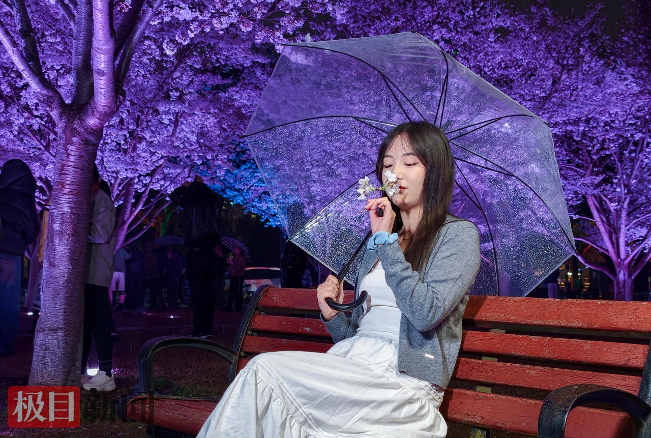 “晚上在湖边赏夜樱,别有一番风味。”来自广州的小李告诉记者,她在网上看到疯传的夜樱美景后,特意到现场来沉浸式体验。