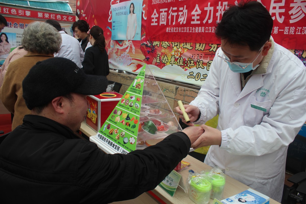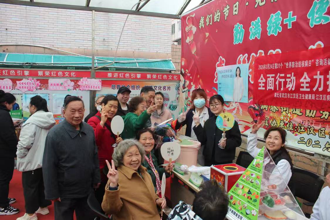 3月19日,武汉市江汉区勤劳社区百姓大舞台前人头攒动,一场以“全面行动,全力投入,全民参与,终结结核”为主题的大型健康义诊活动在此火热启幕。江汉区满春街社区卫生服务中心家庭医生团队携手江汉区卫生健康局、江汉区疾病预防控制中心及医联体武汉市第一医院呼吸科专家,打破传统义诊模式,将优质医疗资源与非遗文化巧妙嫁接,为辖区居民烹制了一道有温度、有深度的“健康大餐”。
