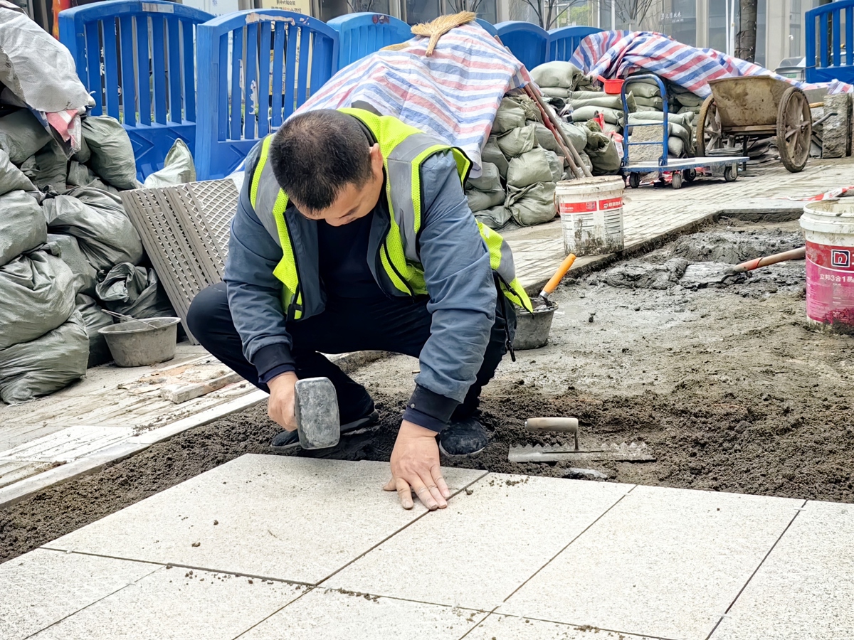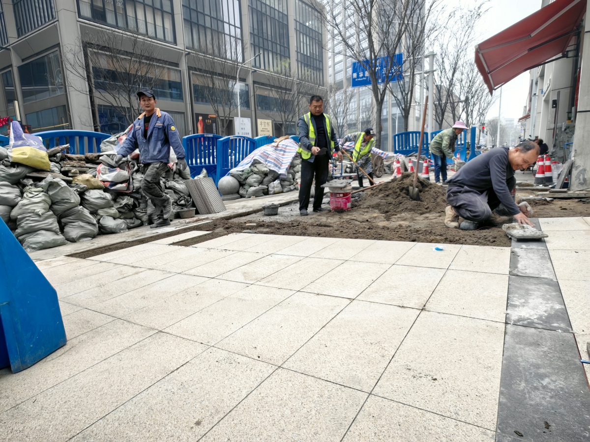 但新问题又出现了。“年前抢工的部分新旧砖有色差,我们也知道不好看。但当时首要任务是先把危险的坑凼补上。”小吴说,“年后我们又做了调整,尤其是大门这片,正对商业街,不再打补丁,而是整片翻新,确保美观。”