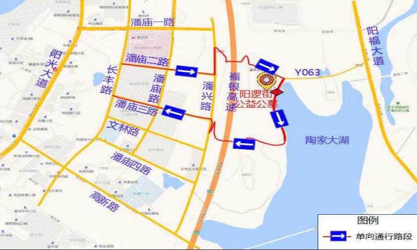 清明节期间7:00-16:00,潘庙二路-潘兴路-063乡道-沿湖无名道路-潘庙三路实行顺时针单向通行。