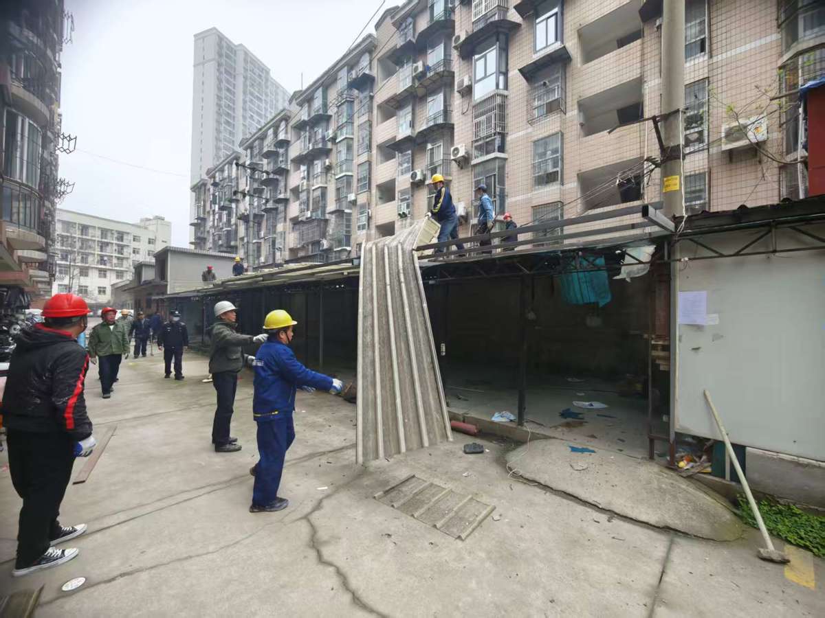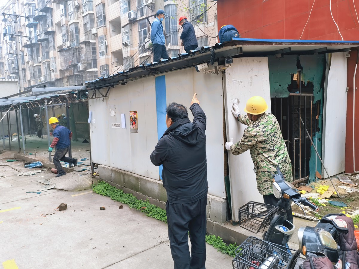 汉水桥街道组织综合执法中心、公管办、社区及施工队伍共40余人,对辖区鑫海花园小区内一处存在消防安全隐患的400平方米违建电动车充电棚进行强制拆除,及时消除了潜在的火灾隐患。