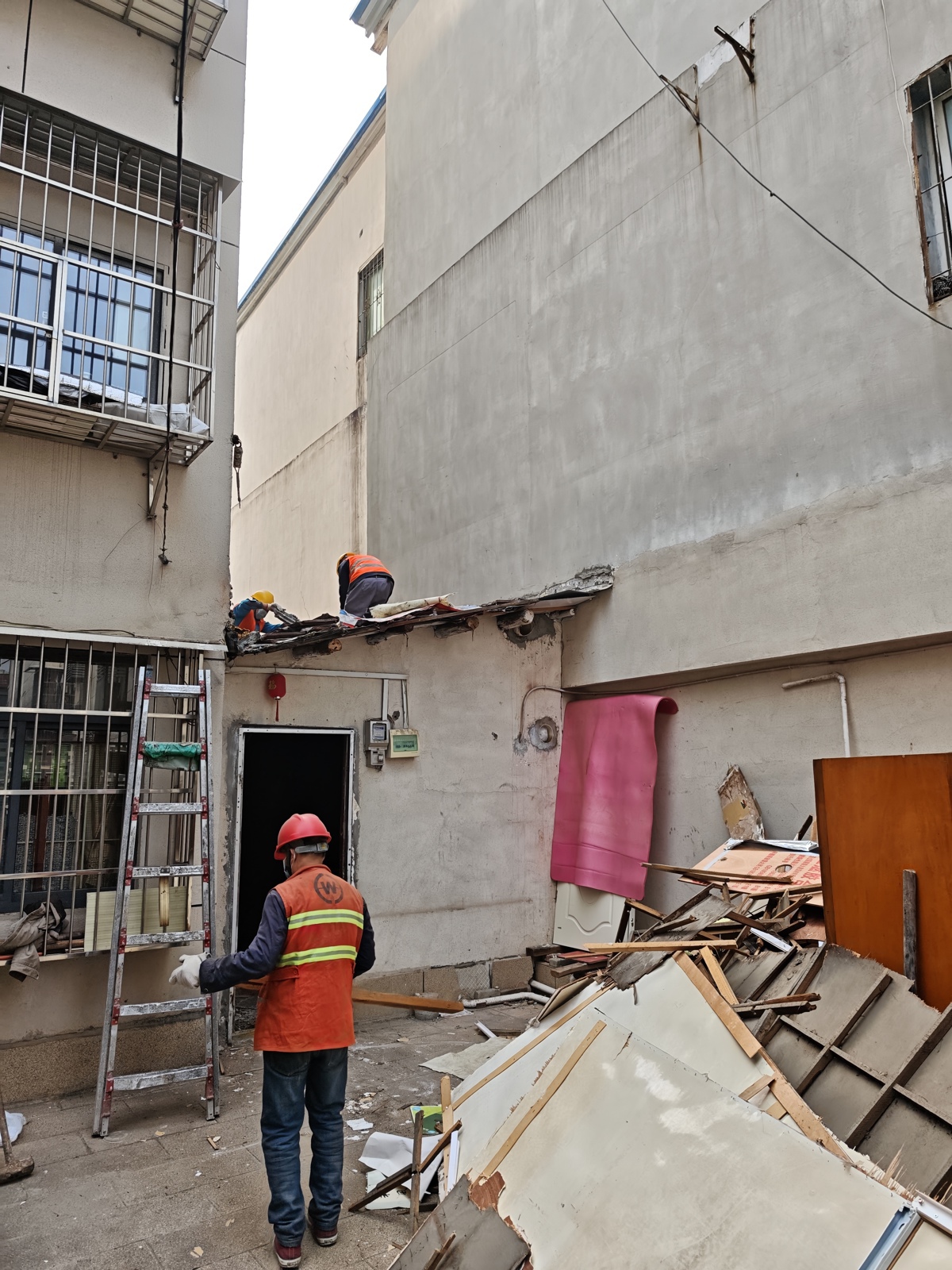 长丰街道针对辖区铜材小区历史遗留的高空存量违建施工难度大、作业风险高等问题,统筹协调执法中心、公管办及社区,严密组织施工、严格安全管控,安全顺利拆除该处10平方米的高空违建,切实维护了居民“头顶上的安全”。