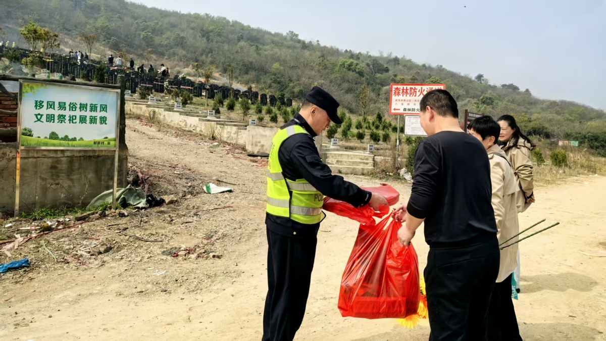 “就在昨天中午,我们刚化解了一起因违规用火引发的火情!”3月29日上午,青山区分局八吉府街派出所副所长刘涛在辖区陵园内,向祭扫市民宣传森林防火安全。