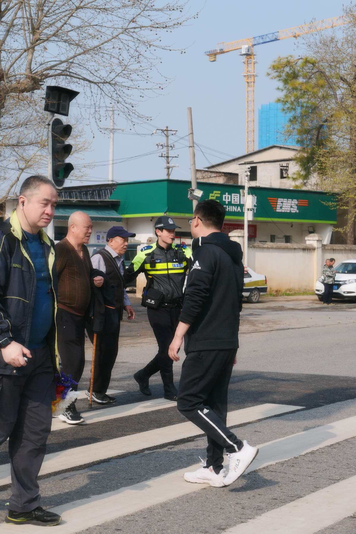 当日上午,辅警李壮壮在该路口执勤,不停在道路两侧穿梭引导,一边示意车辆减速让行,一边护送市民安全过马路。遇到行动迟缓的老人,他主动上前搀扶;遇到推行婴儿车的家长,他耐心帮忙引导。一上午的值守中,李壮壮往返路口无数次,嗓子也喊到沙哑。“看到大家平平安安过马路,我就放心了。”李壮壮说。