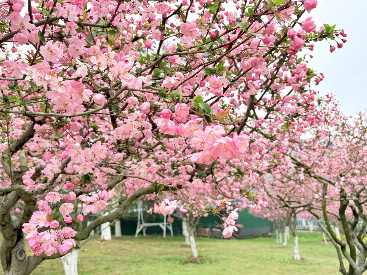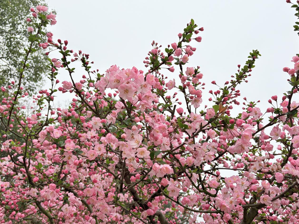 海棠花挂满枝头,水灵粉嫩,夺人眼球