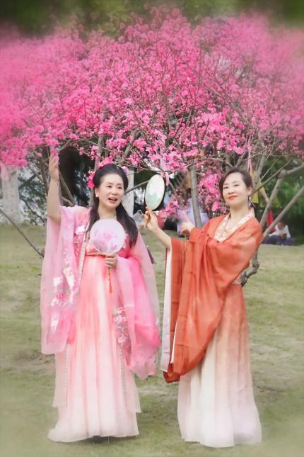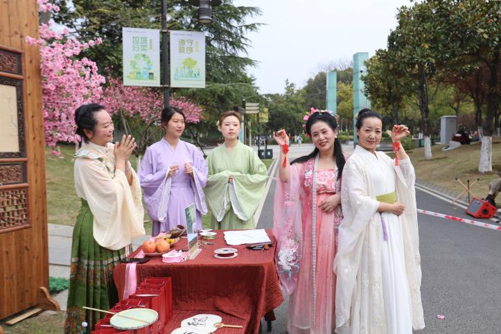 “第一次来月湖花朝节,真的被这里的花海震撼到了,菊花桃的样子特别别致,我一边赏花一边体验篆香净手,还能准点听着琴音漫步湖岸,感觉整个人都放松了。”游客李芳菲徜徉在菊花桃林,边拍照边感慨,直言这次体验超出预期,还要来月湖打卡不同的花景,更期待后续能体验到更多花卉主题的特色活动。游客李先生更是赞不绝口:“月湖的美,美在花海,更美在精致,不仅菊花桃专园很美很飒,樱花大道特别出片,海棠长廊犹如仙境,搭配湖光山色营造一步一景的观赏体验。”不少汉服爱好者表示,能在这样的花海中赶上景区的汉服体验、花朝雅集活动,沉浸式感受国风之美,是一次特别难忘的旅行。