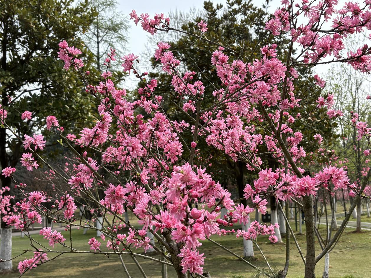 开幕当天,月湖风景区百花盛放,绘就春日绝美生态画卷。漫步其间,记者犹如在花海中畅游:500株园花菊花桃丹霞竞艳,花形别致、韵味独特,成为花海核心景观;近千株桃花沿湖绵延,粉白绯红交织成片,海棠如云、樱花似雪,紫荆、迎春、山茶等花卉错落点缀,与碧水蓝天交相辉映,用自然繁花筑牢“以花为美”的生态底色,为市民游客奉上免费的春日视觉盛宴。