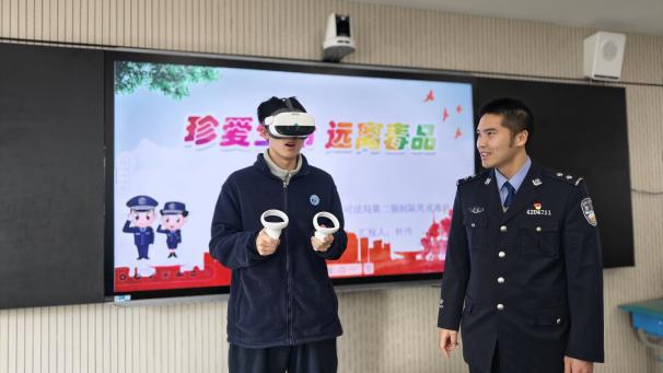 市女子强戒所携手江岸区花桥街社区戒毒康复指导站,走进丹水池三眼桥小学开展禁毒宣传“开学第一课”活动。活动设置禁毒科普展区,重点展示常见易滥用药物及新型伪装毒品,民警重点解读青少年涉毒“好奇陷阱”,并通过“VR戒毒宣教系统”让学生沉浸式体验吸毒危害,进一步强化拒毒防毒意识,为青少年健康成长注入专业禁毒力量。