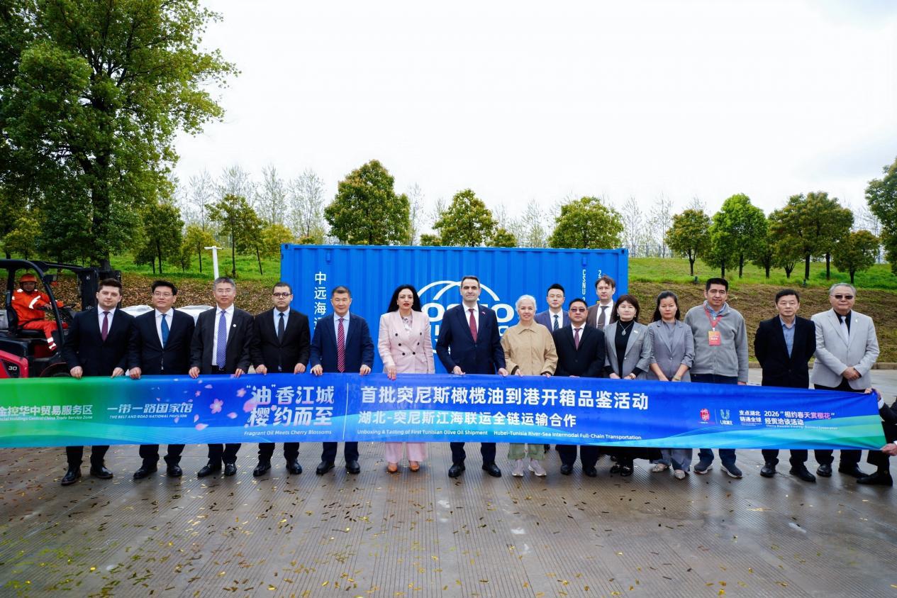 本次活动是2026“相约春天赏樱花”经贸洽谈活动专题系列活动之一:首批突尼斯橄榄油到港开箱品鉴活动暨湖北—突尼斯江海联运全链运输合作仪式在此举行,一条以“油”为引、连接地中海与长江中游的国际经贸新通道正式扬帆启航。