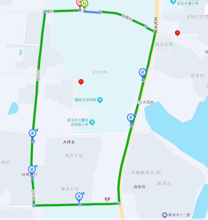 线路2停靠站点:东湖学院南2门--大花岭地铁A出口--大花岭地铁地铁C出口--新华街欧亚达—长江工程职业技术学院北门—大花岭地铁D出口—东湖学院南2门