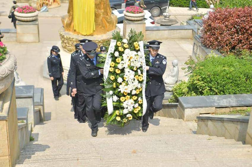 4月1日上午10时许,苍松翠柏掩映下的陵园庄严肃穆。来自分局各单位的35名民警整齐列队,神情庄重地肃立在纪汉同志墓前。随着一声口令,全体民警脱帽默哀,向长眠于此的战友致以最深切的哀思。