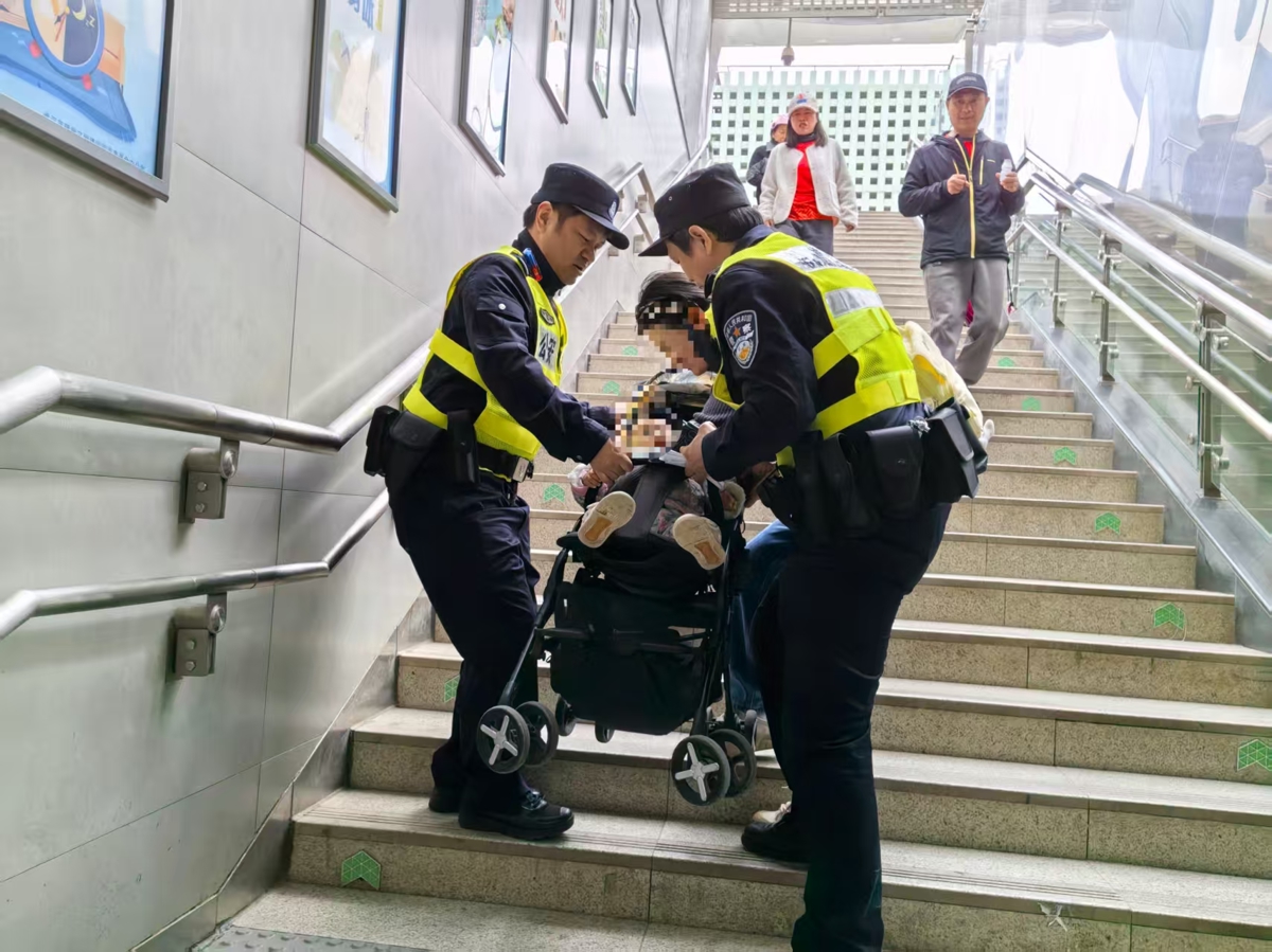 4月2日11时30分许,民警刘明勇、尹超和辅警闵瑞在地铁4号线永安堂站执勤时发现一位八旬爹爹步履蹒跚,神情疲惫。原来,爹爹姓徐,今年80岁,当天独自前往扁担山公墓祭扫,途中因体力透支无法行走。刘明勇、尹超和闵瑞立即找来轮椅,将爹爹转移至站厅休息,并多方查询联系上其家人。12时30分许,徐爹爹的家人赶到地铁站。民警一路护送爹爹及其家人至附近的公交站,直至其安全乘车离开。