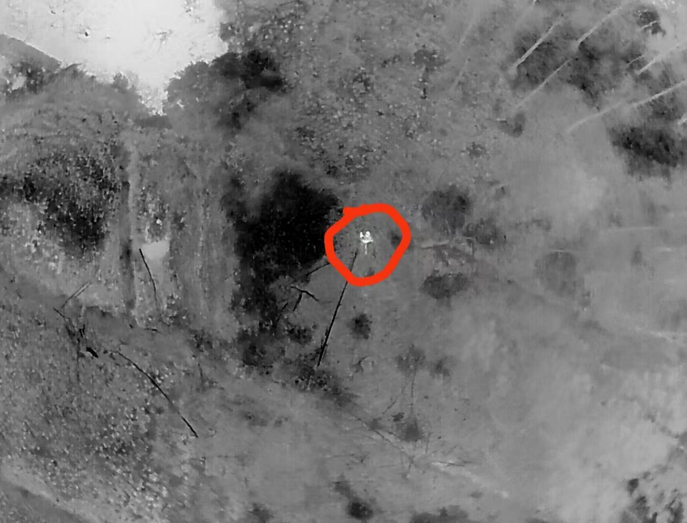 经过2小时的紧张搜寻,终于在次日凌晨1点,于西北方向约2公里外的密林深处,捕捉到一处微弱却清晰的人体热源信号。