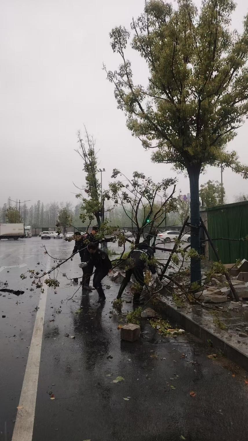 4月9日,强降雨突袭武汉,短时强降雨伴随阵风,武汉长江新区天兴花园社区辖内多条路段出现树木枝干折断、落叶堆积现象。部分粗壮树枝倒伏在人行横道和机动车道上,不仅阻断居民正常出行,更对老人、儿童出行构成安全威胁。社区工作人员第一时间排查辖区道路情况,同步联系下沉社区的城管队员,启动应急联动处置机制。接到通知后,城管队员迅速携带锯子、铁锹、扫帚等工具赶赴现场,与社区工作人员、志愿者组成应急抢险小队,分工协作、高效处置,1小时后,所有倒伏树枝清理完毕,积水路面疏通,受阻道路恢复畅通,切实保障居民出行安全。