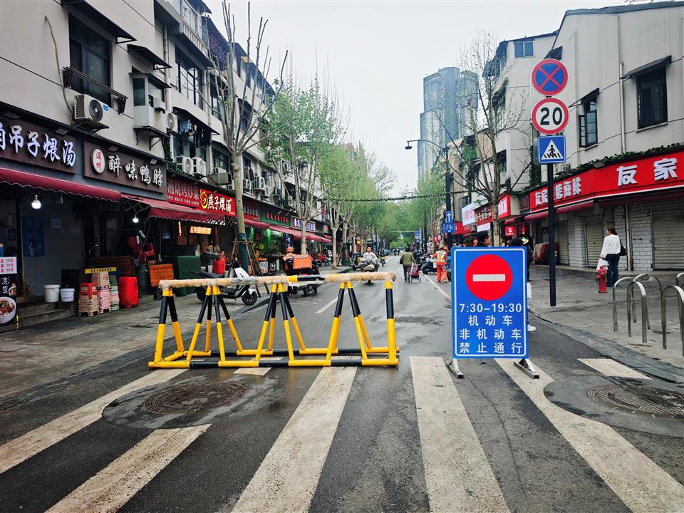 经实地调研分析,山海关路的街道宽度与两旁建筑高度比例协调,非常适合打造成步行街。同时,周边背街小巷密集、四通八达,形成了良好的微循环路网,能有效分流车辆。加之附近居民日常出行并不依赖这条美食街主干道,为实施分时管理创造了有利条件。目前,分时步行方案已平稳运行,既保留了热闹的烟火气,又保障了出行安全与秩序,成为城市精细化管理的生动样本。