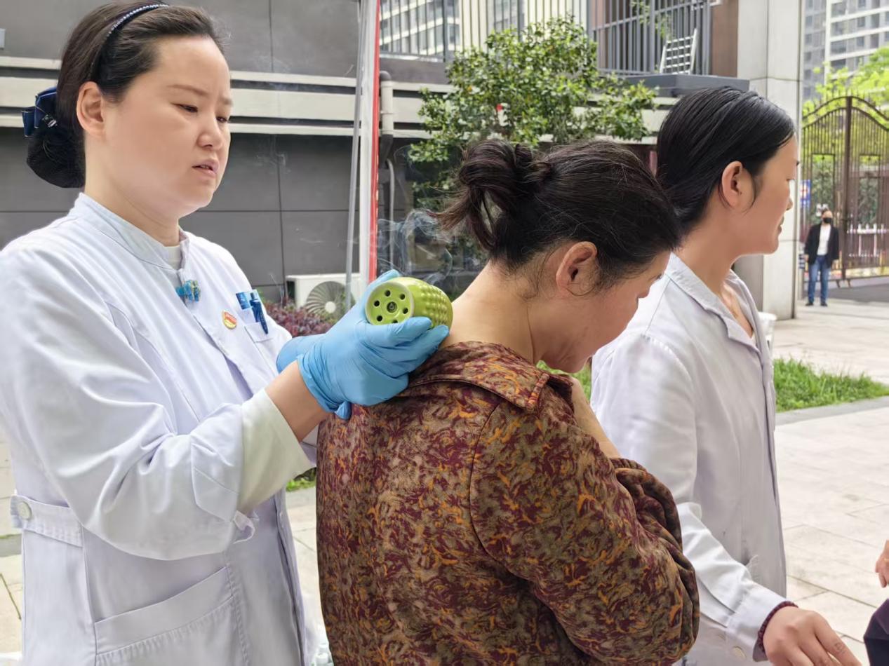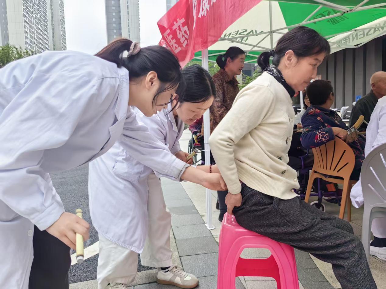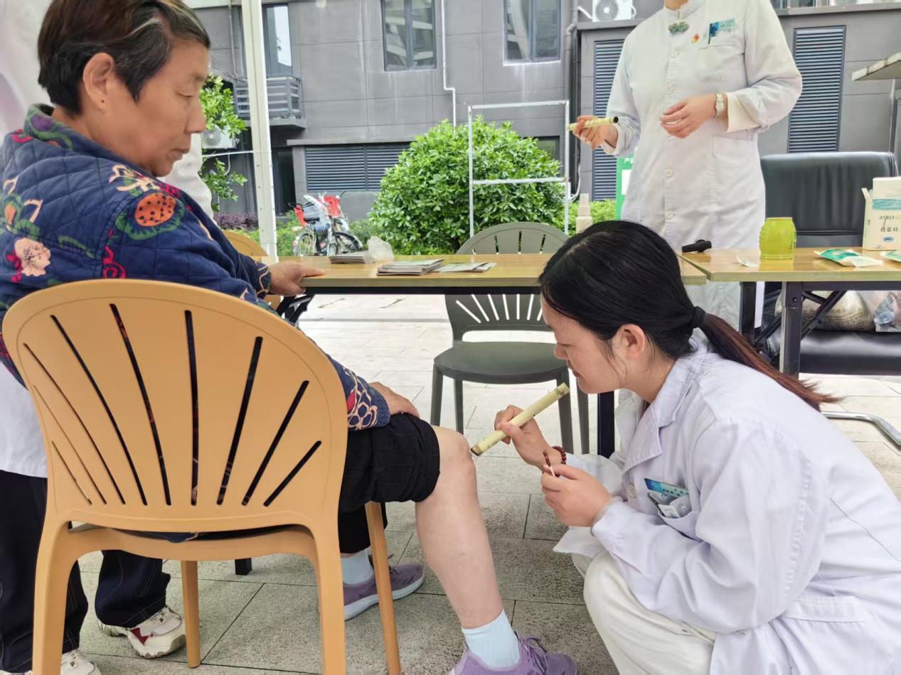 在特色治疗体验区,针灸、艾灸、刮痧等中医传统手法的展示和体验成为活动亮点。医师们凭借娴熟的技艺,为深受颈肩腰腿痛困扰的居民实施针灸治疗,精准取穴、轻柔操作,通过刺激穴位疏通经络、调和气血,缓解肌肉僵硬和疼痛;艾灸体验区暖意融融,缕缕艾烟升腾,医师根据居民体质选取相应穴位施灸,以温热之力温通气血、祛寒除湿,帮助居民改善畏寒怕冷、手脚冰凉等不适,不少居民体验后直呼“浑身舒畅,暖意直达心底”。一位年过七旬的居民感慨道:“平时去医院看中医要排队挂号,今天专家直接到社区来,不仅免费问诊,还能现场体验针灸、艾灸,手法专业又贴心,真是为我们老年人办了件大好事!”还有不少居民在体验完特色治疗后,主动询问后续调理方法,希望能进一步接受中医治疗。