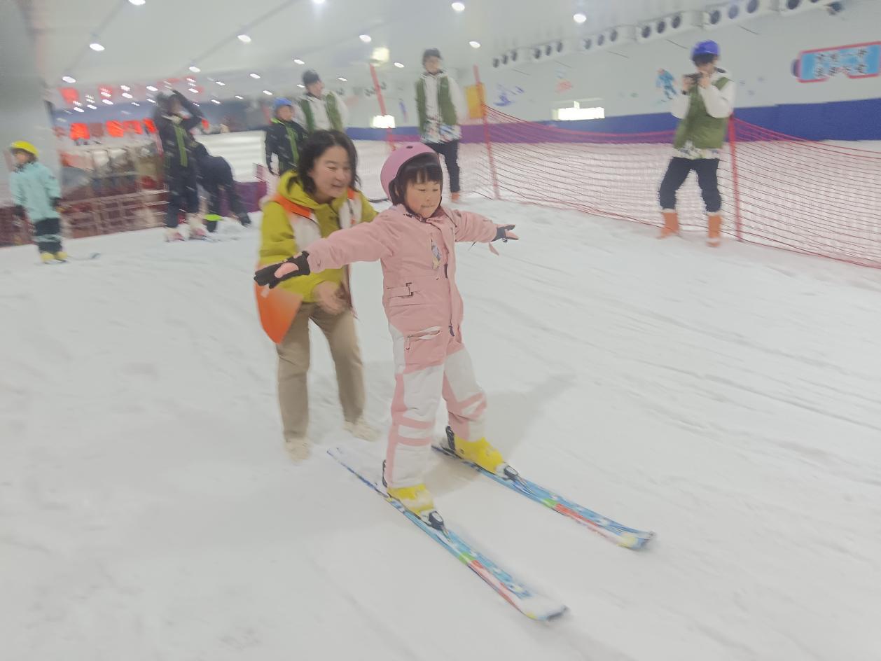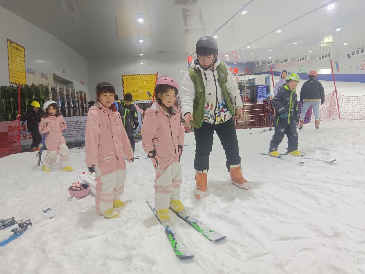 早上9:30,集合点热闹起来。社区工作人员核对人员后,带领大家有序上车;途中,他们化身“导游”,热情介绍活动亮点,车厢里笑声不断。“雪上飞驰初体验”环节将活动推向高潮:专业滑雪教练通过雪仗躲避赛、滑雪保龄球等趣味游戏,引导孩子们熟悉雪板、掌握重心;随后手把手教授基础滑行与刹车技巧,细致讲解装备使用规范。孩子们穿戴好护具,像摇摇摆摆的小企鹅般走上雪道。有人刚迈步就摔倒,却没人哭鼻子——爬起来、拍拍雪,继续练习。李雨萱小朋友滑完一圈,脸蛋红扑扑地喊道:“教练教的刹车技巧太有用了!我从总摔倒到能稳稳停住,进步好大!”雪道上的欢呼声、加油声交织成一片,连雪场都仿佛变得热气腾腾。