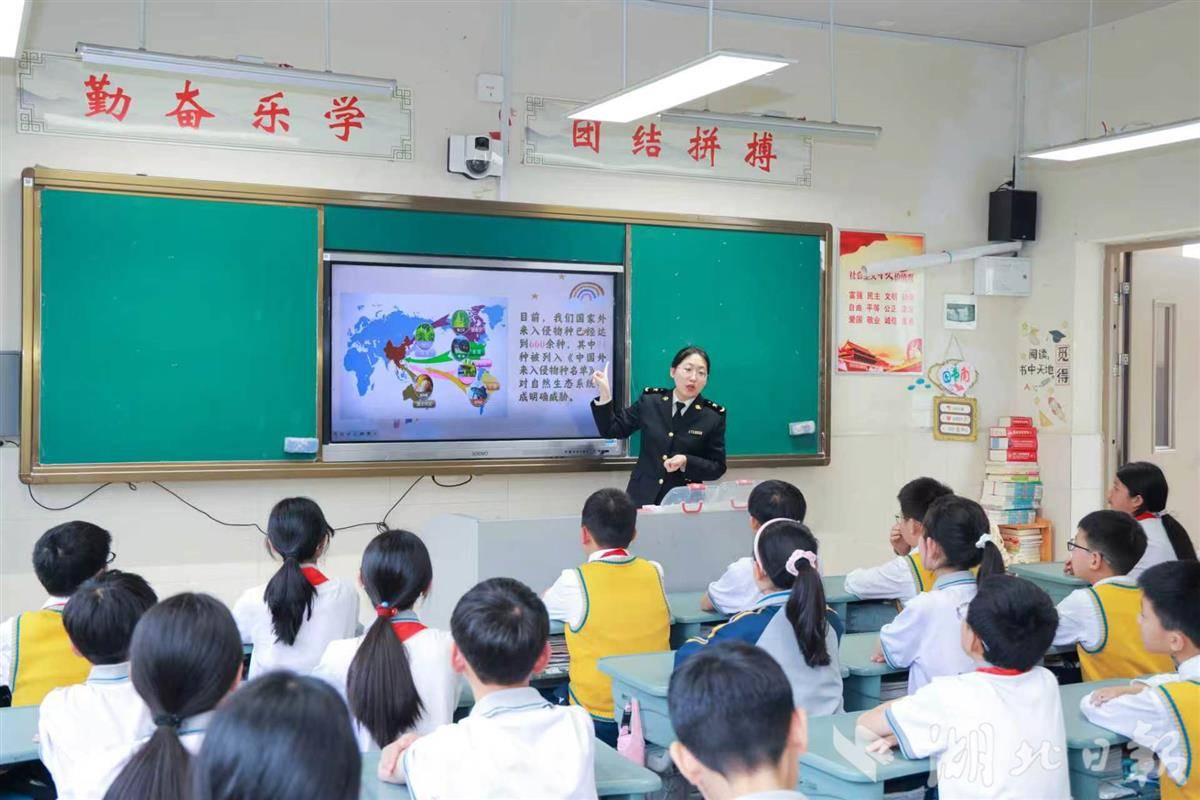 从随州的幼儿园到十堰的外国语学校,海关关员们通过动画演示、标本展示、互动问答等孩子们喜闻乐见的形式,在他们心中播撒下维护国家安全的种子。