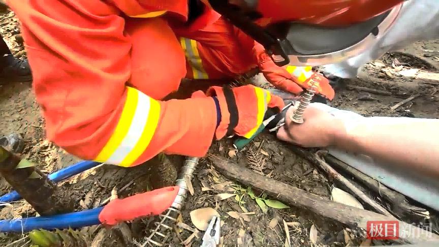 据被困男子回忆,当天他与朋友一起踏青游玩,途中看到有一队驴友从野路向上攀爬,且听说此段野路沿途有不少野笋可以采挖,几人便跟随一起同行。没走多远后,男子和朋友便与驴友队伍走散,恍然间走进一片树林中,陈先生左脚不慎踩中捕兽夹被套。起初,陈先生曾用手机搜索捕兽夹解锁方法,在尝试许久后未能成功,随后才拨打了报警求救电话。