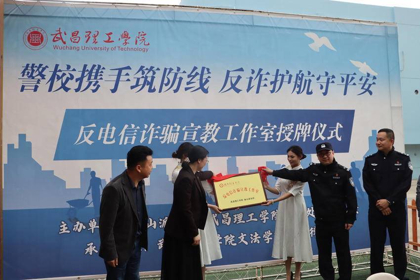 集中活动虽已落幕,但守护并未停止。当天下午,庙山派出所与武昌理工学院安保处、学工处联合成立的“反电信诈骗宣教工作室”正式揭牌,庙山派出所副所长杨立国与校领导共同授牌,为平安高校建设再添一道坚实的“防护网”。