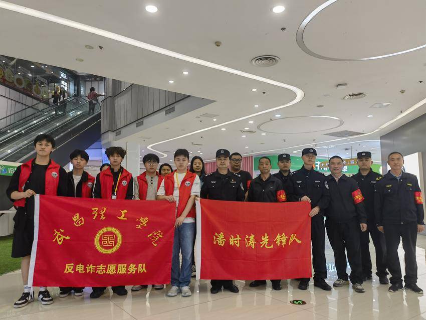 授牌结束后,潘时涛又带领文法学院学生志愿者、西潭社区网格员、广信万汇城义警队伍,组成四支宣传小分队,兵分四路,对学校周边的广信万汇城商业街开展“地毯式”反诈宣传,做到商户全覆盖、不留死角。