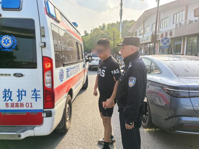 18日15时许,游客詹某某在东湖绿道骑行时突发心悸,身体强烈不适,被困在九峰渔歌路段无法动弹。民警余少华、辅警王进接警后火速赶到现场,一边安抚其情绪,一边将其搀扶至警车内休息,并同步拨打120。为争取救治时间,余少华果断驾车将患者平稳送出绿道,提前抵达接应点与救护车会合,全程无缝衔接,帮助其顺利送医。