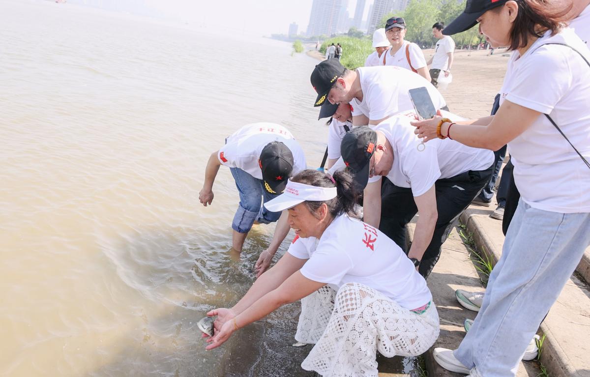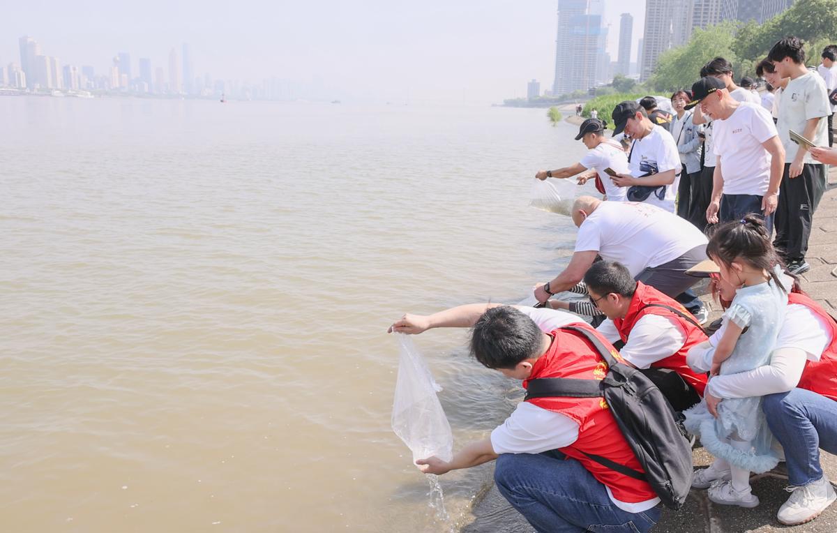 4月19日上午,武汉长江观景第一平台江畔暖意融融。武昌区退役军人“长江卫士”志愿服务队联合武汉市军休二中心,以及武汉大学、武汉理工大学、中南财经政法大学等多所高校青年志愿者,共同开展2026年长江大保护鱼苗增殖放流活动,以实际行动为长江注入新生力量。