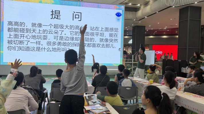 活动现场,句象书店的专业讲师以“地球的奇妙旅程”为主题,开启了地球故事大冒险环节。讲师通过生动的绘本讲述、趣味问答和震撼的自然纪录片片段,带领孩子们穿越亿万年时光,探索板块运动、火山喷发、海洋形成等地理知识。从“为什么会有四季更替”到“南极冰盖下藏着什么”,孩子们踊跃举手、积极互动,现场氛围热烈而活跃。家长们纷纷表示,这种沉浸式故事分享打破了传统科普的枯燥感,让孩子在倾听中主动吸收知识,印象格外深刻。