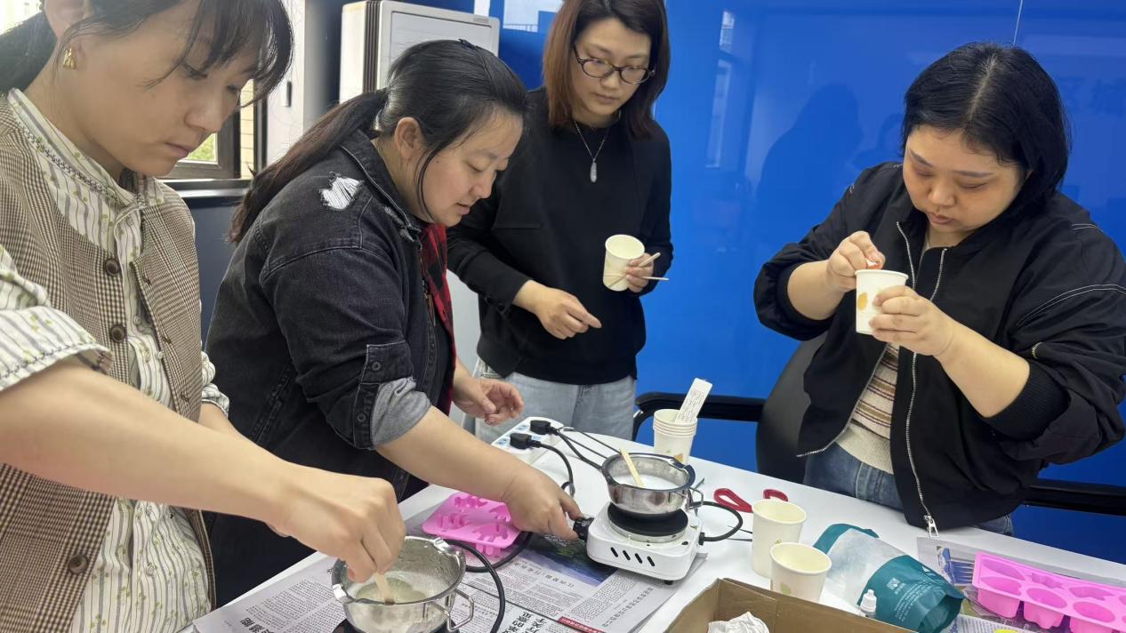 如果说运动类课程是“向外释放能量”,那么手工课就是“向内安顿自己”。熔蜡、调色、塑形,或搅拌、倒模、等待皂化……在香薰蜡片和手工皂制作课堂上,平日里敲键盘的手,开始创造温度和香气。