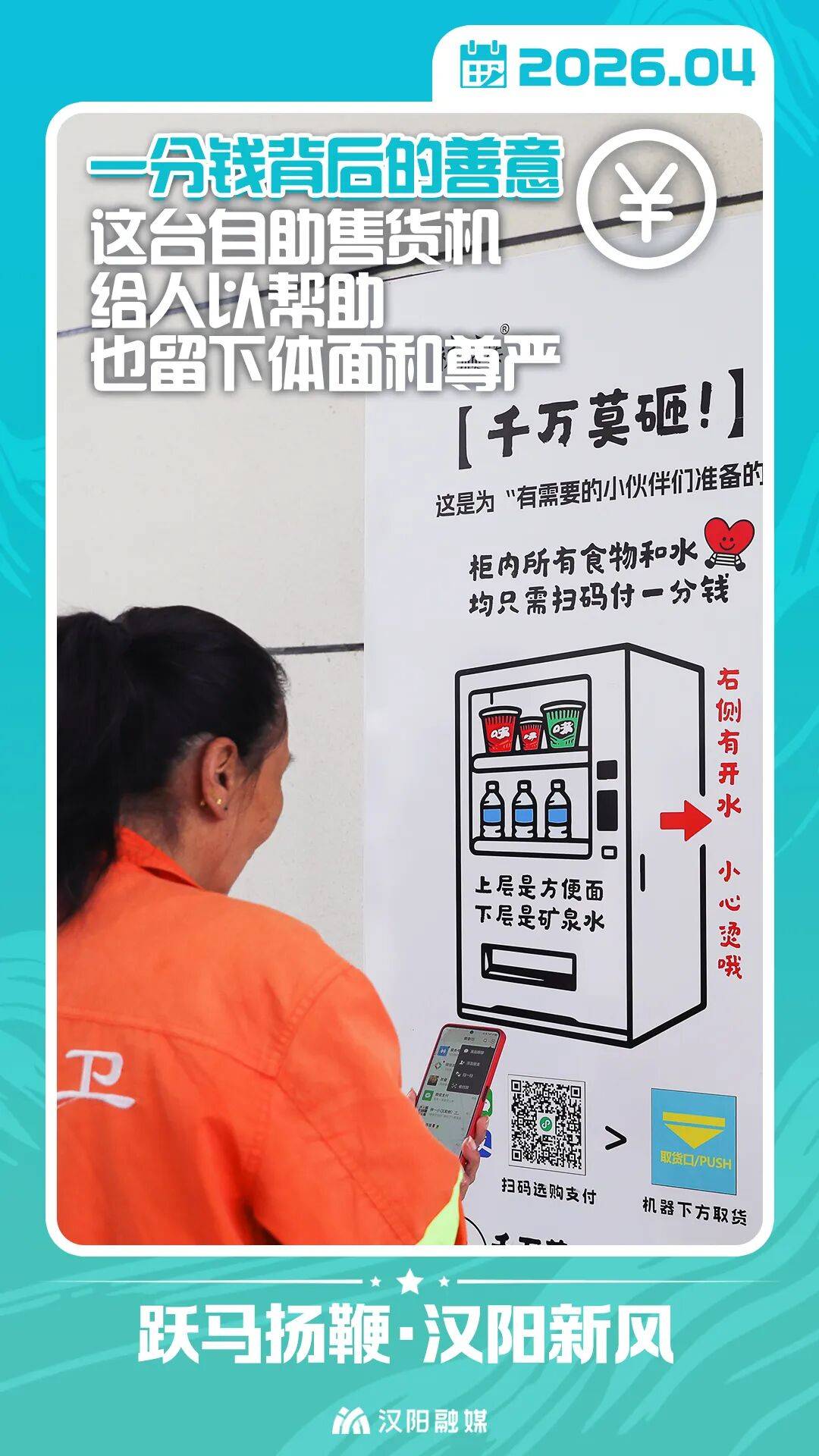 城市的温度,从来不在钢筋水泥的高度,而在人与人之间心照不宣的守护;文明的底色,从来不在宏大叙事,而在烟火气里自然而然的崇德向善里。这台爱心售货机,静静地立在街头,它不是冰冷的金属机器,因为藏着汉阳人滚烫的真心——每一次按键,都是一次善意的传递,每一份补给,都是一份温暖的感动。