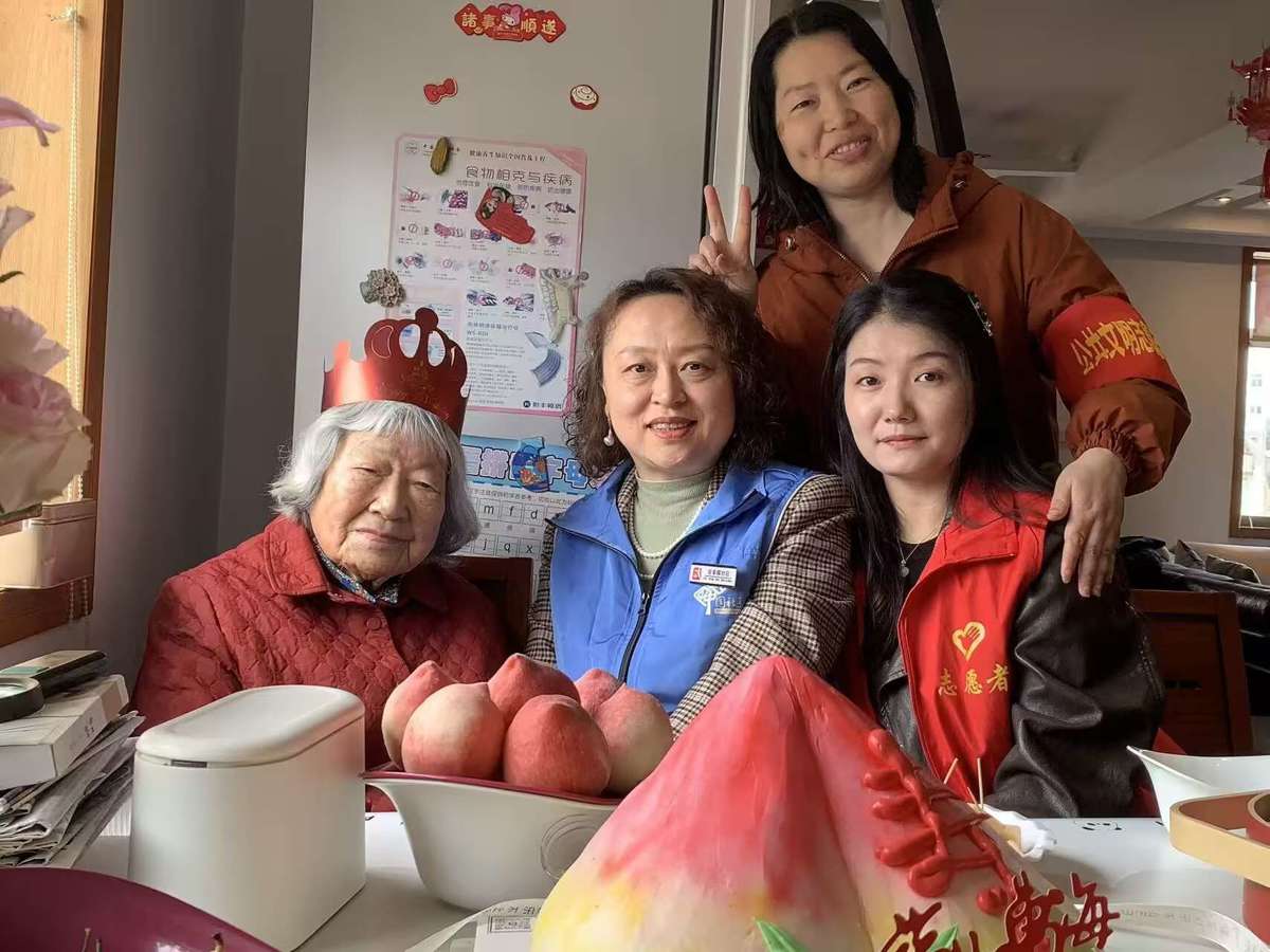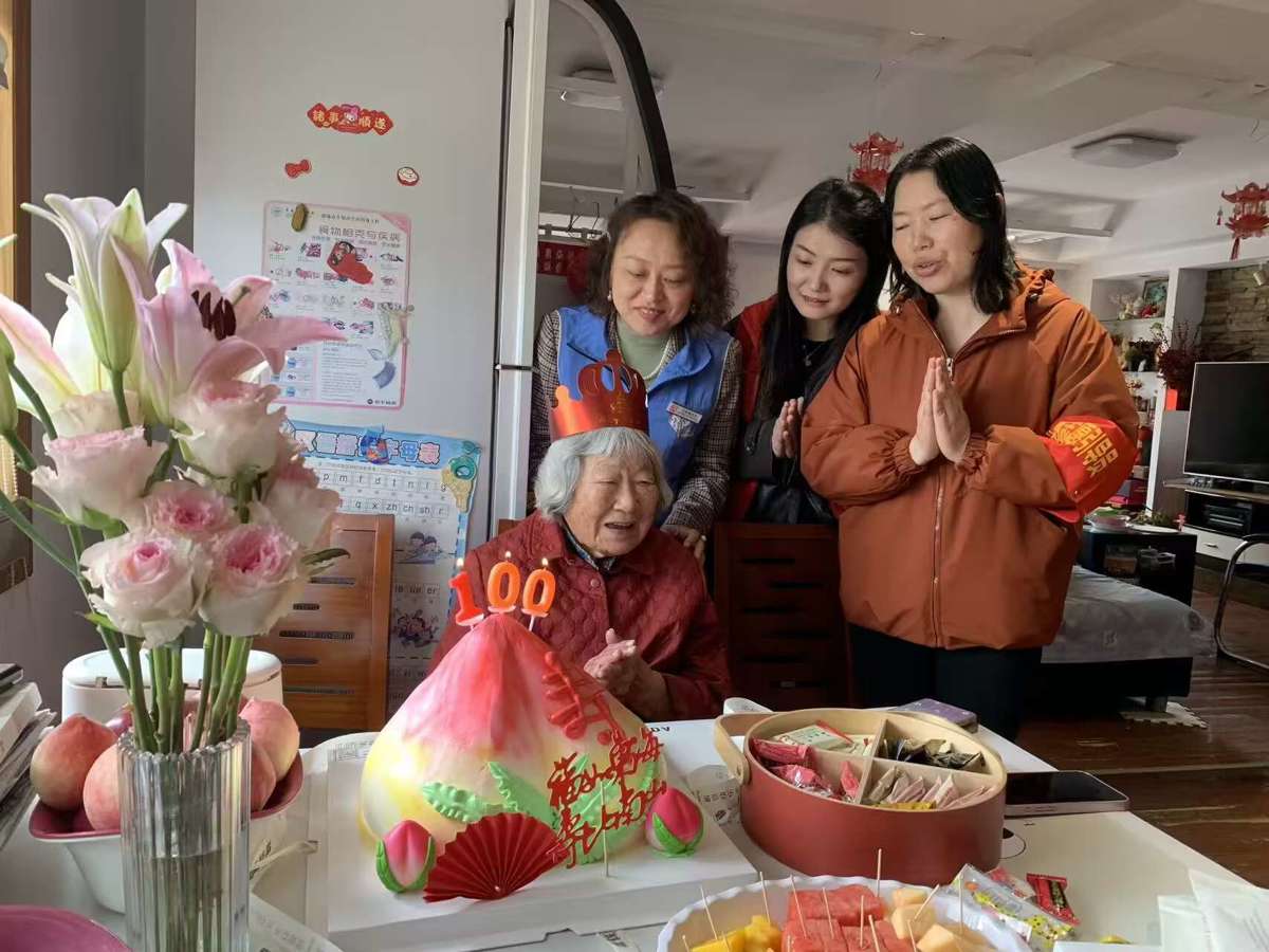 4月24日,武汉市武昌区水果湖街道岳家嘴老年人服务中心工作人员与社区志愿者,前往辖区百岁老人严洪芳家中,开展上门庆生慰问活动,为老人送上生日祝福与贴心陪伴。